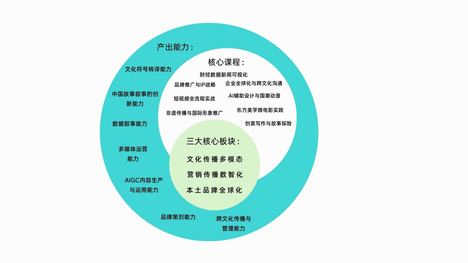 该微专业汇聚国际传播、市场营销、AIGC、数据新闻等多学科优势,形成系统化培养路径。经过一年的学习,你将全面掌握国际传播理论、数字化传播工具、品牌战略规划等核心能力,成为兼具国际视野与实践能力的复合型人才。